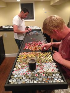 Семья специально для этого проекта в течение 5 лет собрали 2,530 пивных крышек. «Первоначальная концепция заключалась в том, чтобы выложить из крышек изображение», – сказал он. – «Но позже мы сделали выбор в пользу градиентного эффекта». Выбранная последовательность называется ROYGBIV (последовательность оттенков, составляющих радугу: красный, оранжевый, желтый, зеленый, голубой, синий и фиолетовый).